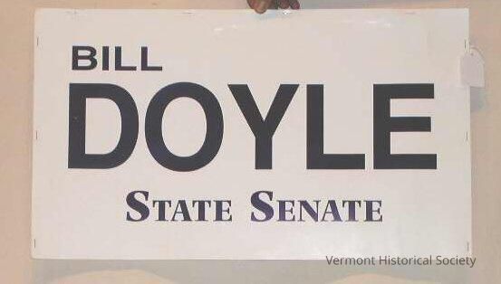 White campaign sign printed in black with the words, "BILL DOYLE STATE SENATE".