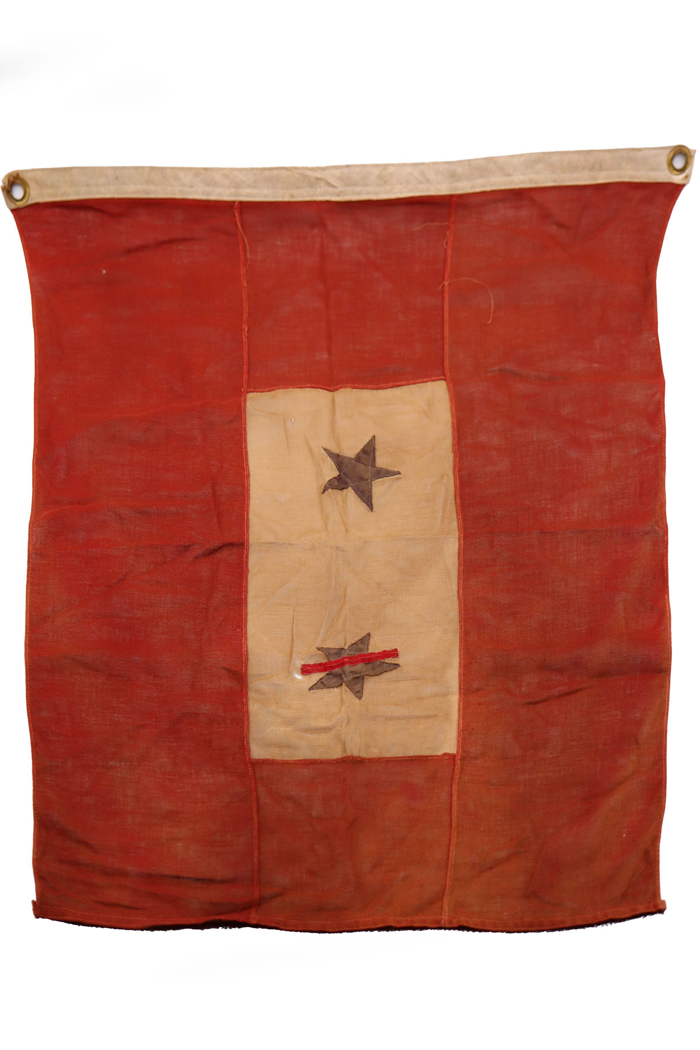 Banners such as these were hung in the windows of homes of servicemen's families during World War I to indicate that a member of the household was serving in the war. In this case, two members of the family were serving (indicated by the two stars), and one had been killed in action (indicated by the strike out).Context