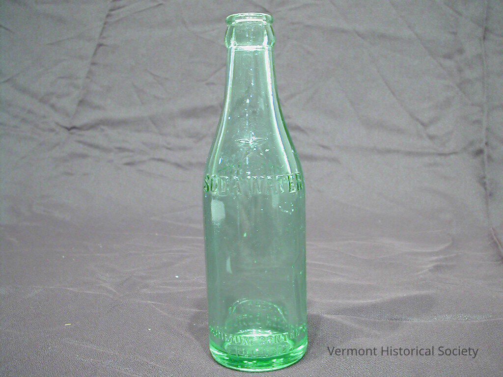 Green glass bottle with a molded star at the base of the neck and the molded inscription, "STAR SODA WATER".