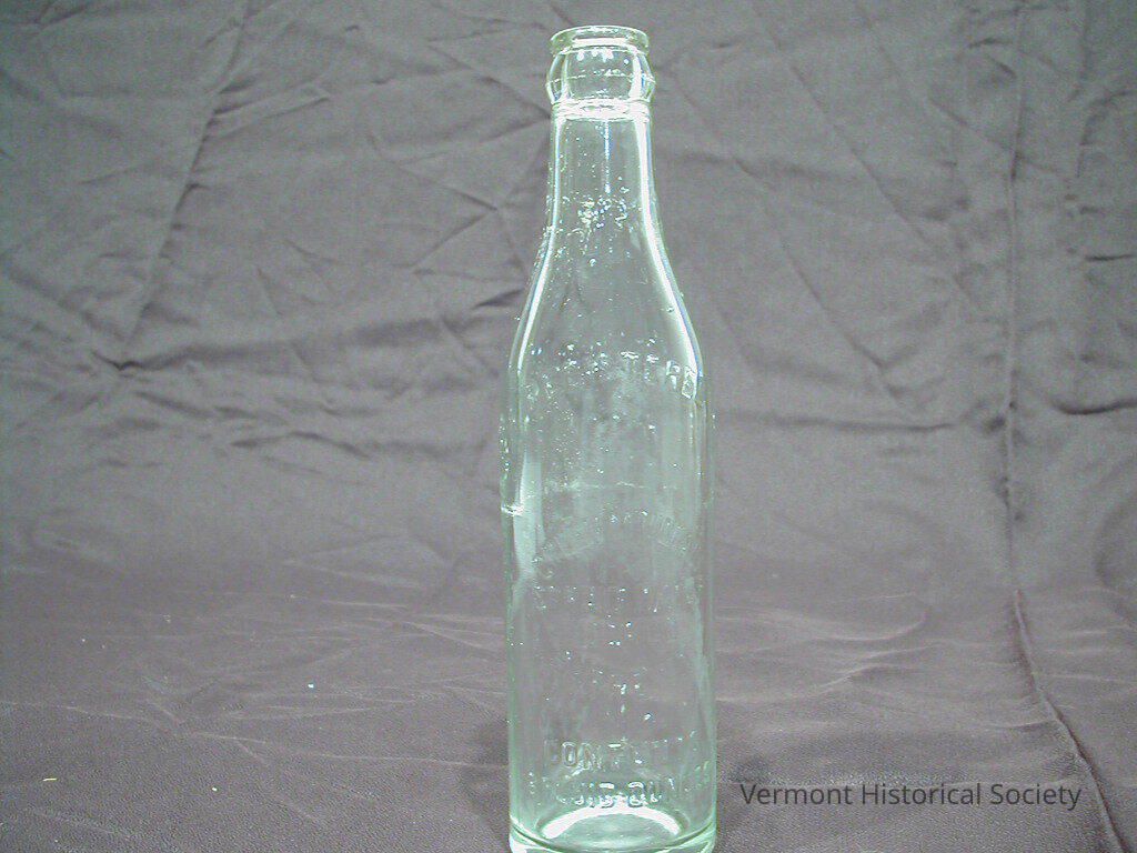 Clear glass bottle with molded inscription, "Green Mountain Spring Co., Barre, VT."Context