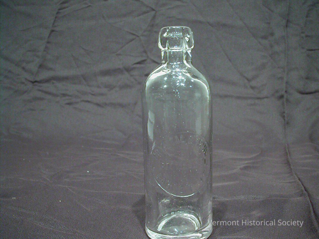 Straight-sided clear glass bottle with the molded inscription, "Crystal Spring Bottling Co. Barnet, VT."Context
