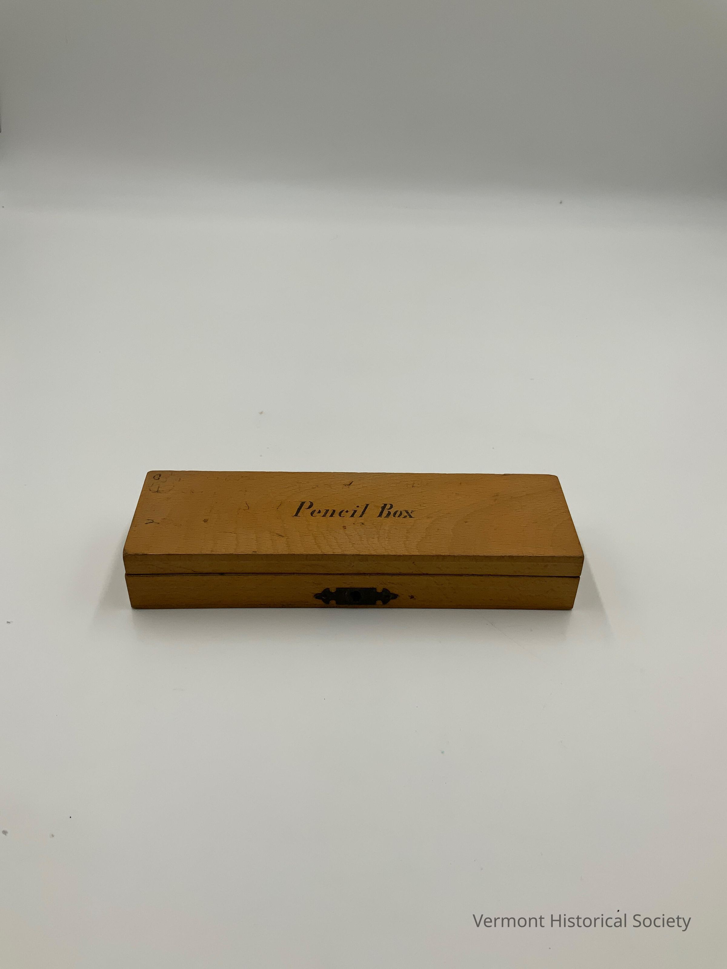 This pencil box was given to Fern Souther by her Grandfather Wilbur Suther. Fern Souther was born on June 1st, 1913. Fern attended primary school in Lowell, Vermont, and then graduated from UVM in 1931.Acquisition