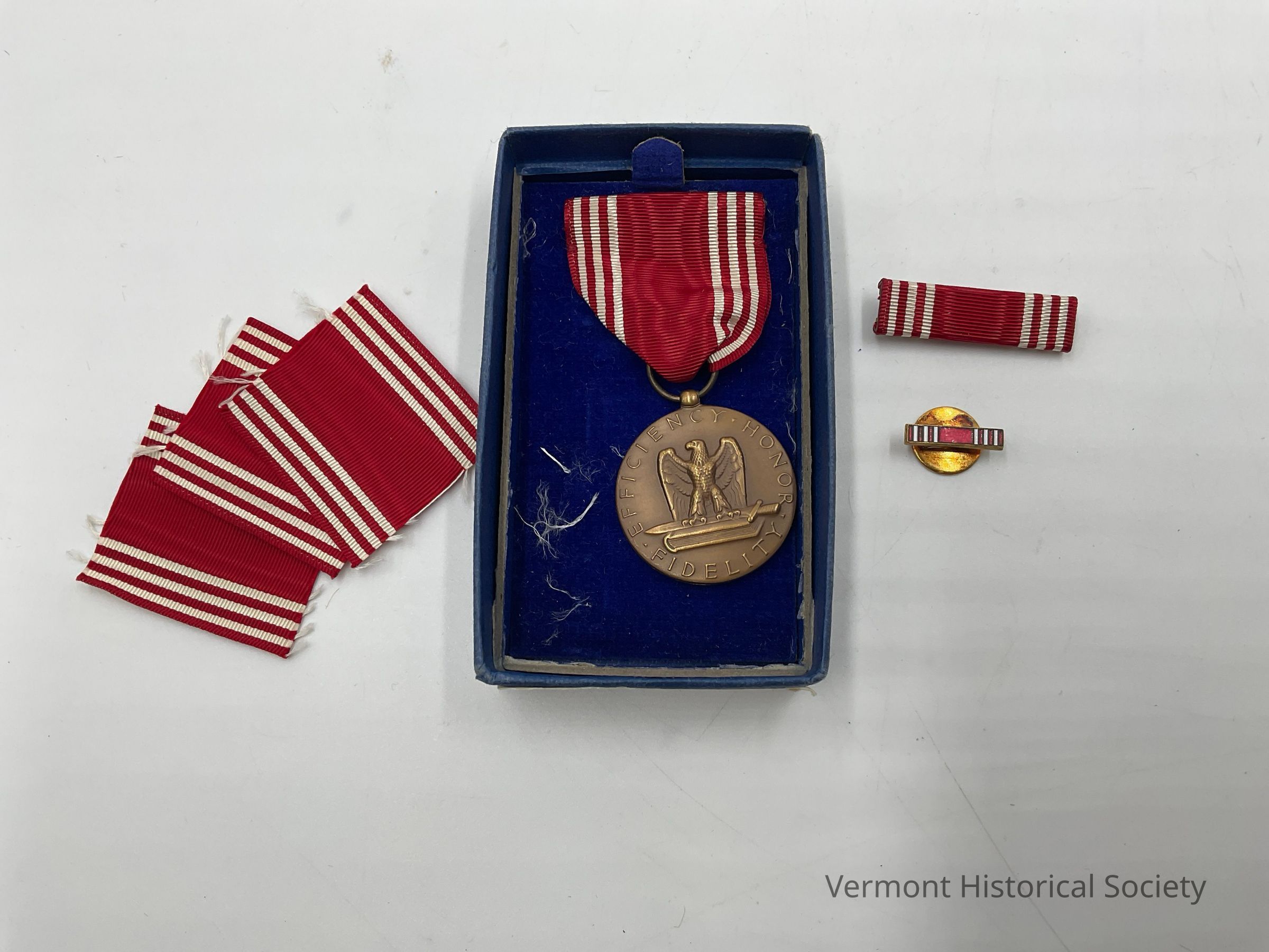 These belonged to Charles Oliver Baxter (1906-1971), who was born in Highgate, VT, worked in retail sales in Pennsylvania and Middlebury, Vermont, eventually buying and running Boucher Clothing Store in Swanton. He enlisted in the U.S. Army in October of 1942 and rose in rank to a second lieutenant. It appears that he spent the war stateside.Acquisition