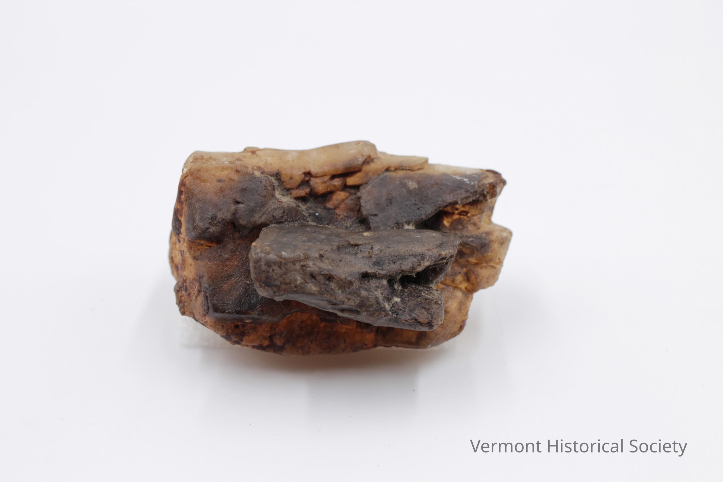 Maple sugar crystal wrapped in a paper note that reads: "Maple Sugar crystal found in a 2 quart jar of low grade maple syrup put up in the early 1940s. When jar was emptied in 1974 this crystal was found. Elwin and Violet Davis, Gee Hill, Royalton, Vt." Note on the back of the paper reads: "brought in by John Powell, Groton, Vt. found at Gee Hill So. Royalton."Acquisition
