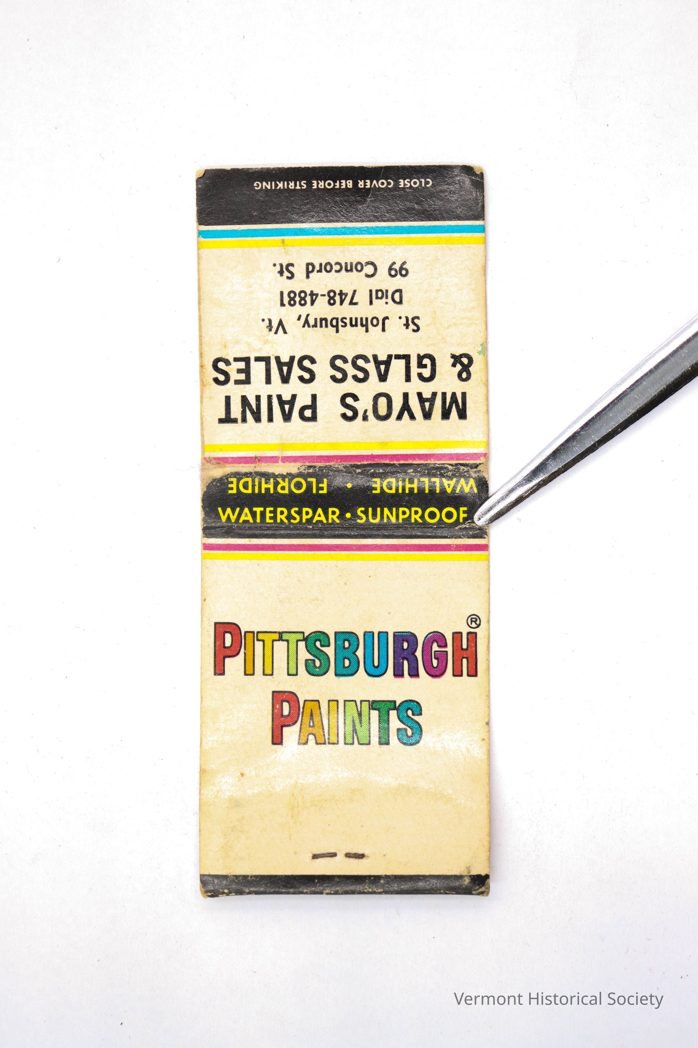 The back is printed with the inscription, "Pittsburgh Paints" in rainbow lettering.Context