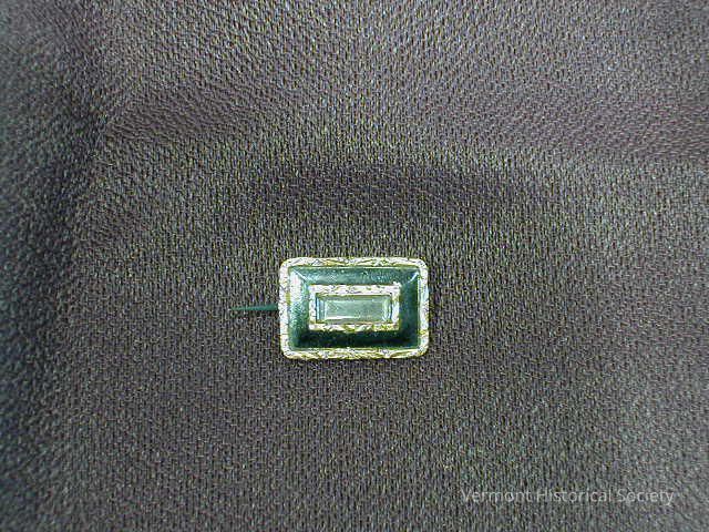 Square, black pin with gold trimming and hair in the center.Acquisition
