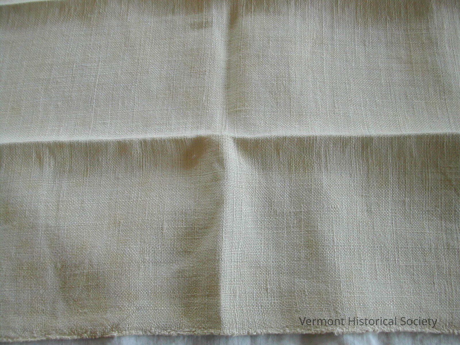 2 matching plain-woven linen towels. The long sides are hemmed, and the short sides are selvedges. One towel is marked "Rugg" in ink.