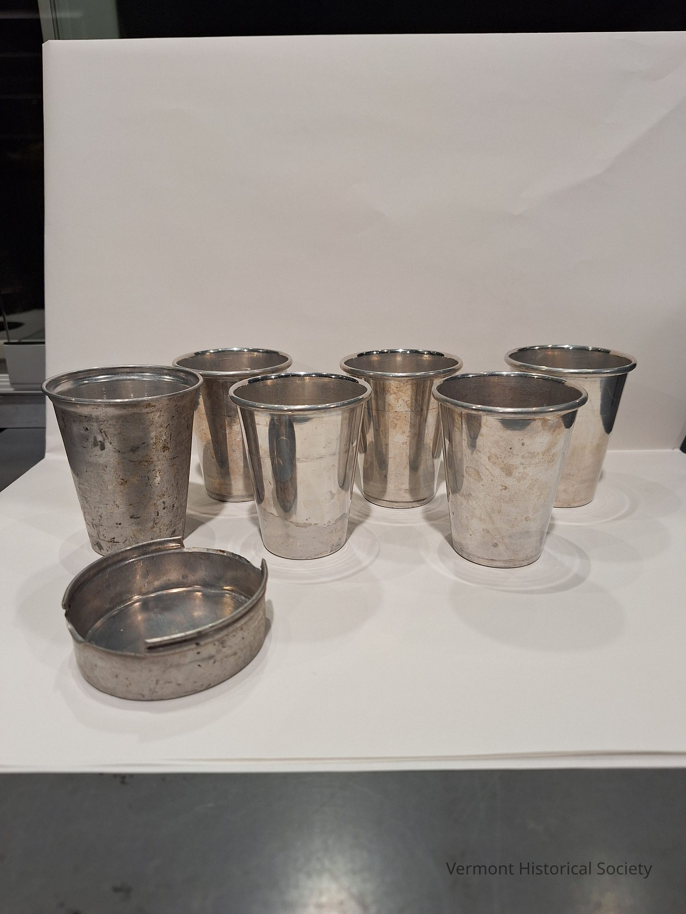 These cups were used by Katherine and Leroy J. Dopp while hiking the Long Trail.