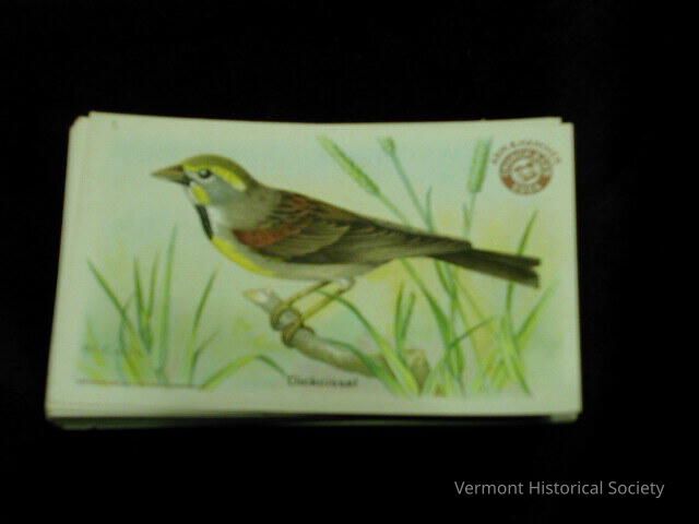 Deck of 30 cards, each printed with a life-like illustration of a bird with a label at the center bottom. Cards 7, 12, 28 are missing. The cards are numbered and have the logo of Arm & Hammer Co. in one corner, with the words, "Church & Co's Soda". The set is labeled, "THIRD SERIES USEFUL BIRDS OF AMERICA / Full set of cards sent on receipt of ten cents in coin or stamps / FOR THE GOOD OF ALL, DO NOT DESTROY THE BIRDS."Context