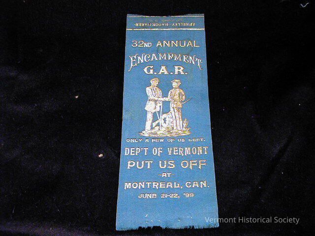Worn by a member of the GAR to the Vermont Department's 1899 annual encampment in Montreal, Canada.