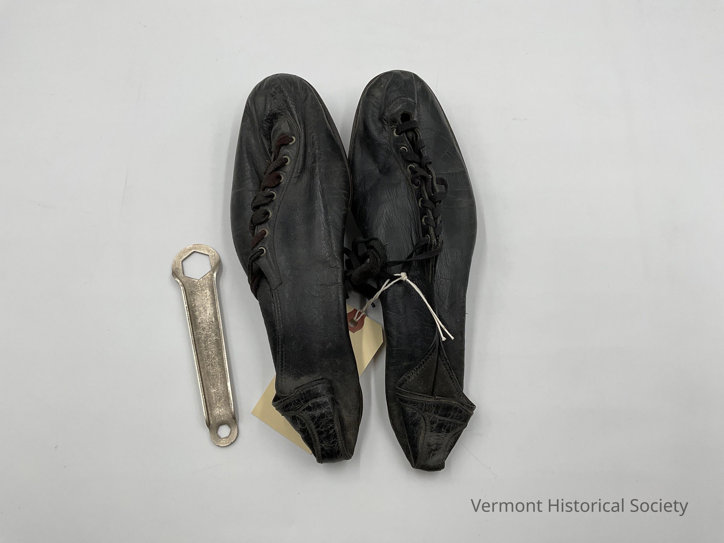 These shoes and wrench were part of the Lawrence Rossi (1918-2015) collection and were used by his son, Laurence Rossi. He ran track in both high school (Spaulding High School in Barre) and college (Norwich University).Acquisition