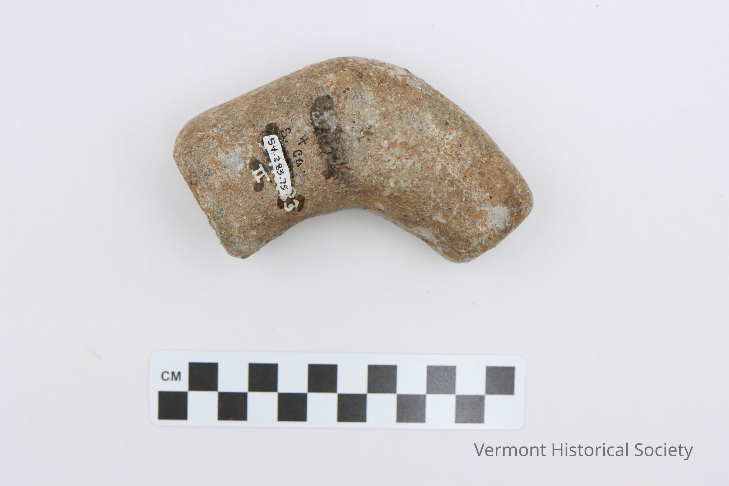 Large, ground stone elbow pipe.