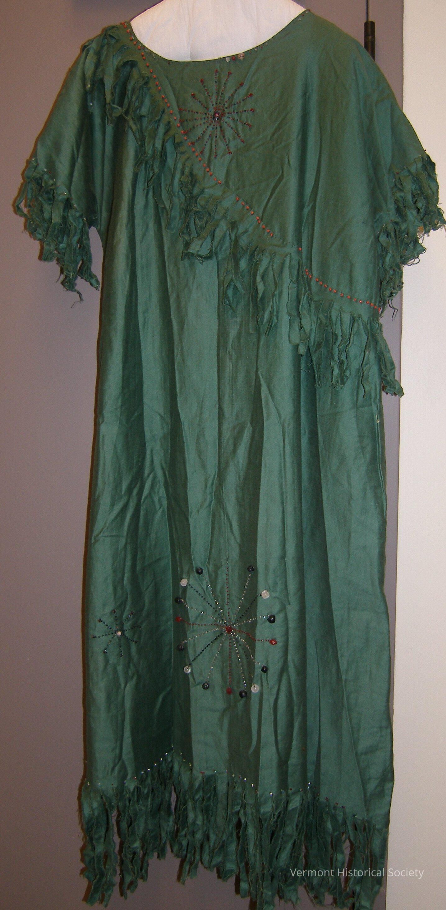 "Indian" costume made by Jeneva Peterson for a school play at Burlington High School. Years later, Peterson's children wore the dress as a Halloween costume for several years.Acquisition