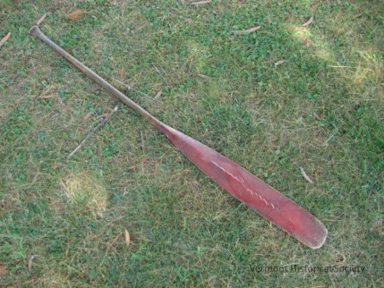 Straight Blade, Southern Quebec Native style Canoe Paddle. This paddle was made by a Stanstead Quebec Abenaki Man. It has the Wabanaki blade-ridge to strengthen the paddle, a detail found on Maine Native paddles, but the pommel and the blade are unlike those more common eastern Wabanaki paddles.