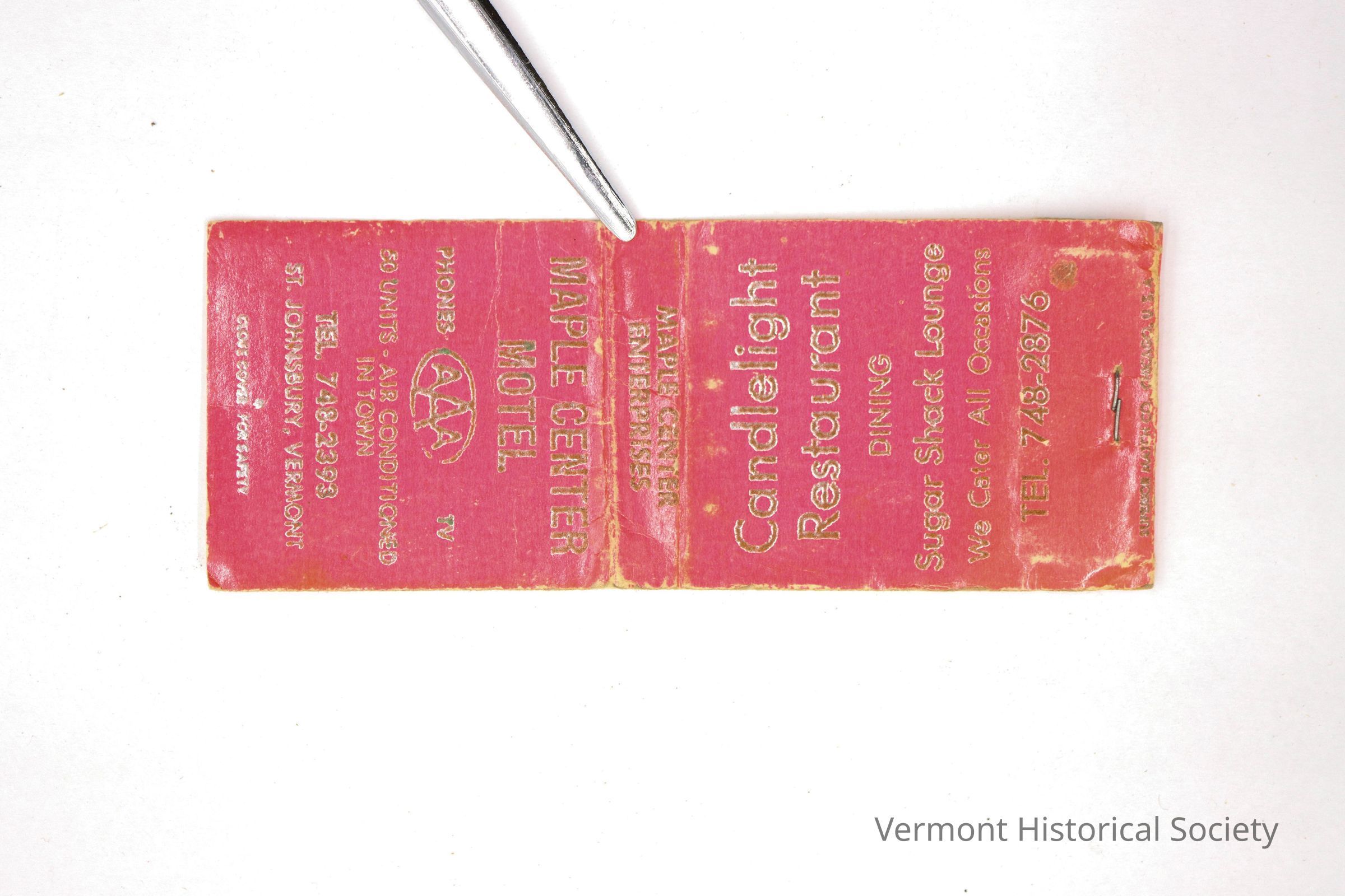 Produced as an advertisement for Maple Center Motel and Candlelight Restaurant in St. Johnsbury, VermontAcquisition