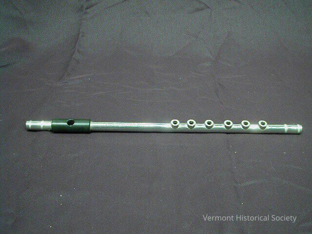 One-piece body of nickel silver with raised fingerholes and short longitudinal lines engraved on each end. Ebonite mouthpiece.