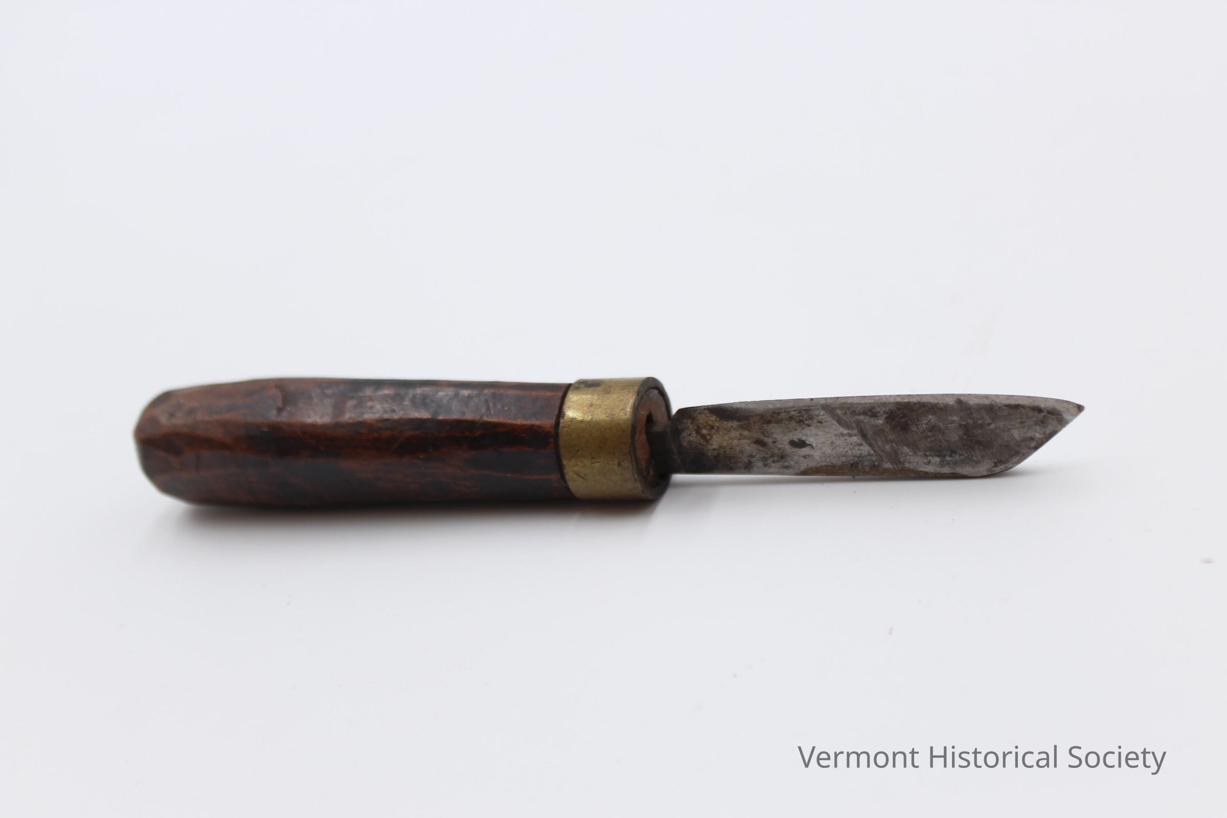 In 1938, the statue of Ceres on top of the gold dome of the Vermont State House was removed. The hand from that statue can be seen elsewhere in this case. 87-year-old Dwight Dwinnell, Sergeant-at-Arms of the State House, used these tools to carve a replacement for it based on Mead's original. Dwinnell's Ceres is considered today to be an important piece of folk art, and recently underwent restoration.