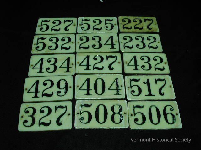 Used to identify room numbers in the Pavilion Hotel in Montpelier, VermontAcquisition
