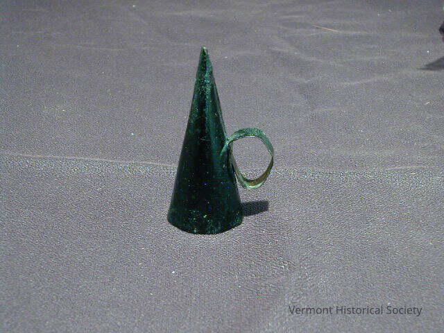 Candlesnuffer consisting of a metal cone with an oval handle. The handle is formed from a thin metal sheet.