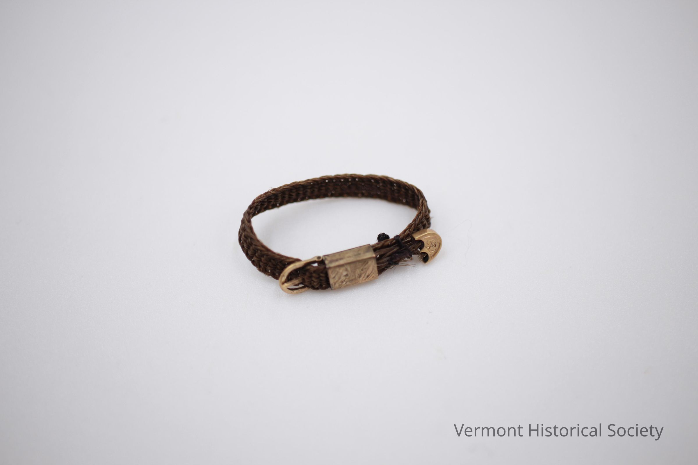 Worn by Ellen Louisa Bryant Mathews. Made from the hair of her first husband.