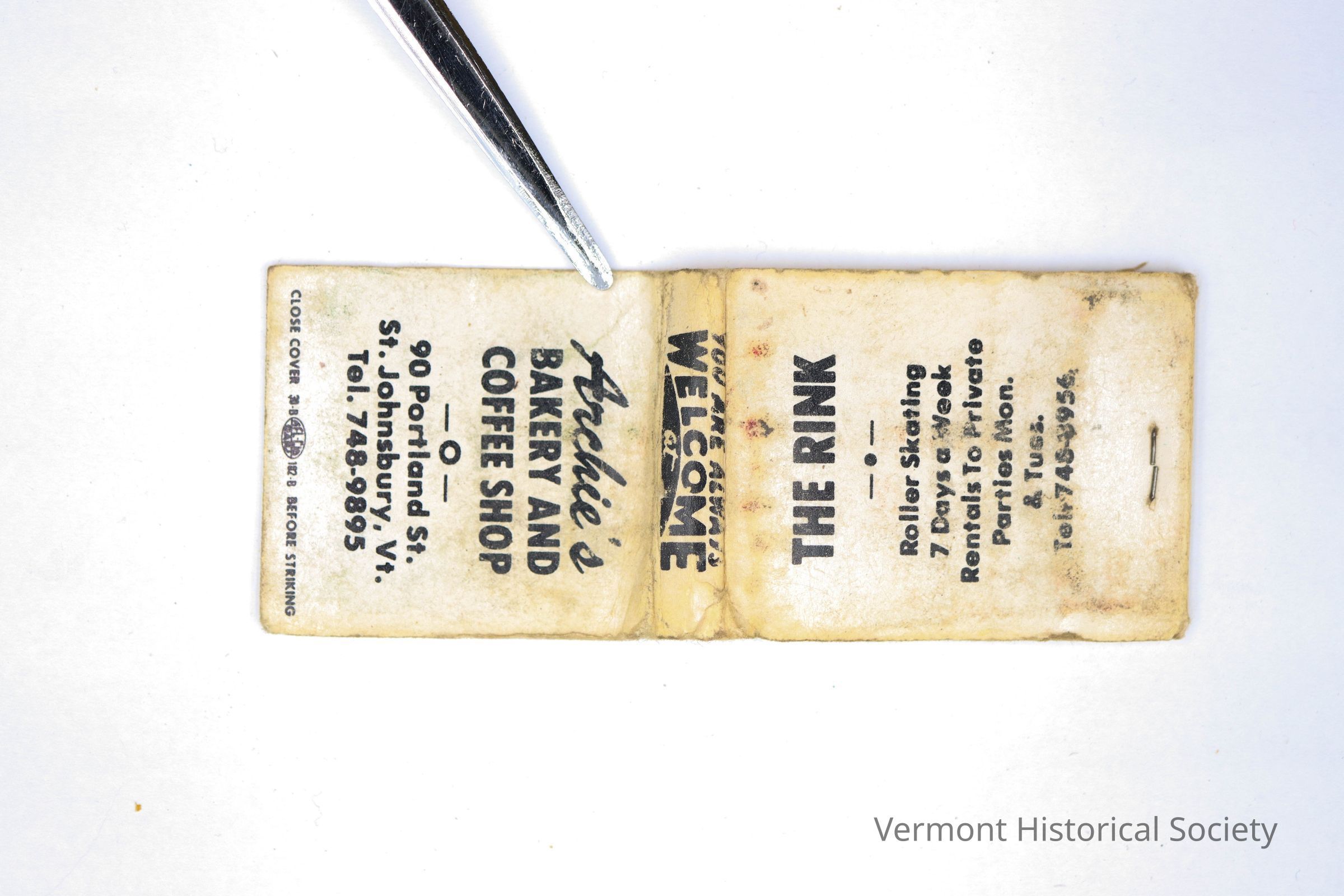 Produced as an advertisement for Archie's Bakery and Coffee Shop and The Rink in Saint Johnsbury, Vermont.Acquisition
