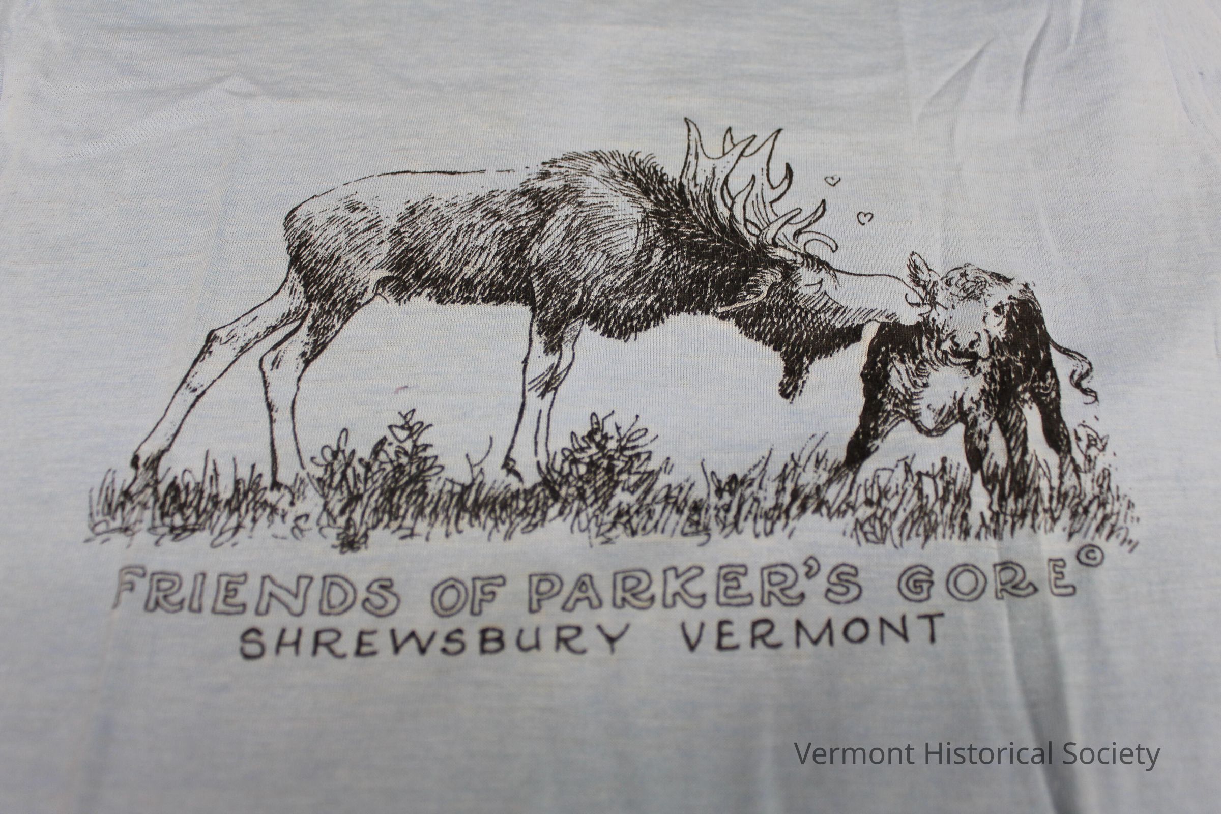 Produced as a fundraiser for Parker's Gore. The illustration is in reference to the book "A Moose for Jessica", a non-fiction book telling the story of a moose who displayed mating behavior toward a domestic cow in Shrewsbury, Vermont.Acquisition