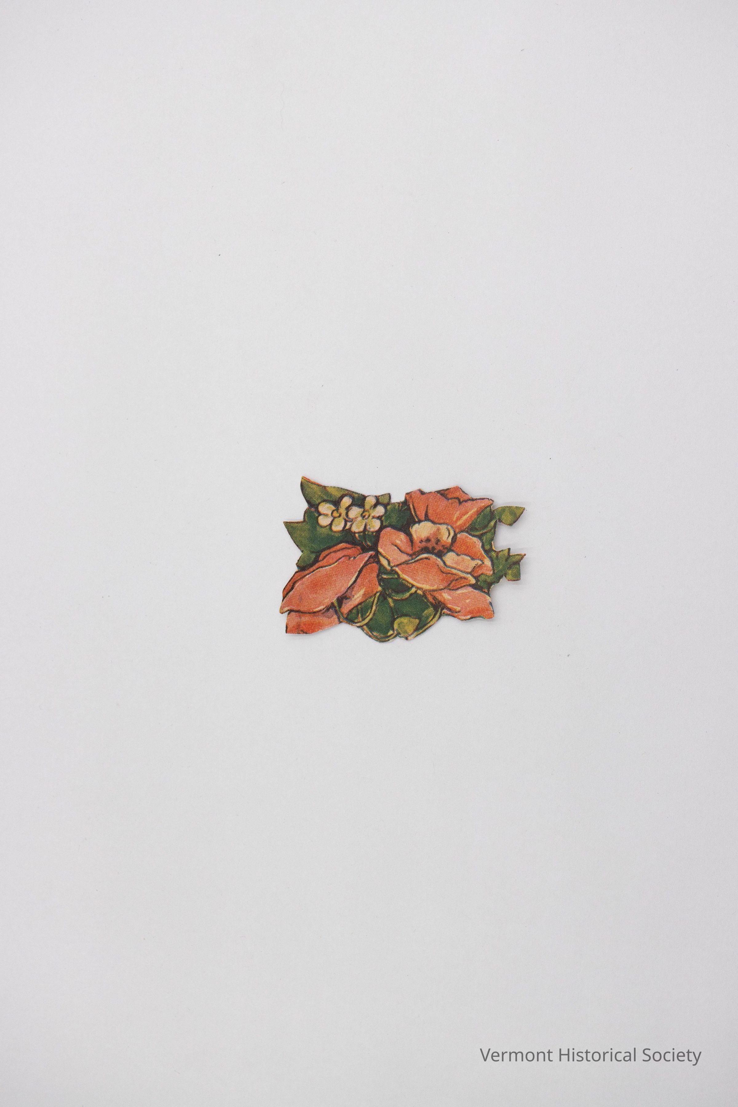 Printed paper floral bouquet for a paper doll. It consists of pink poppies and green leaves.Context