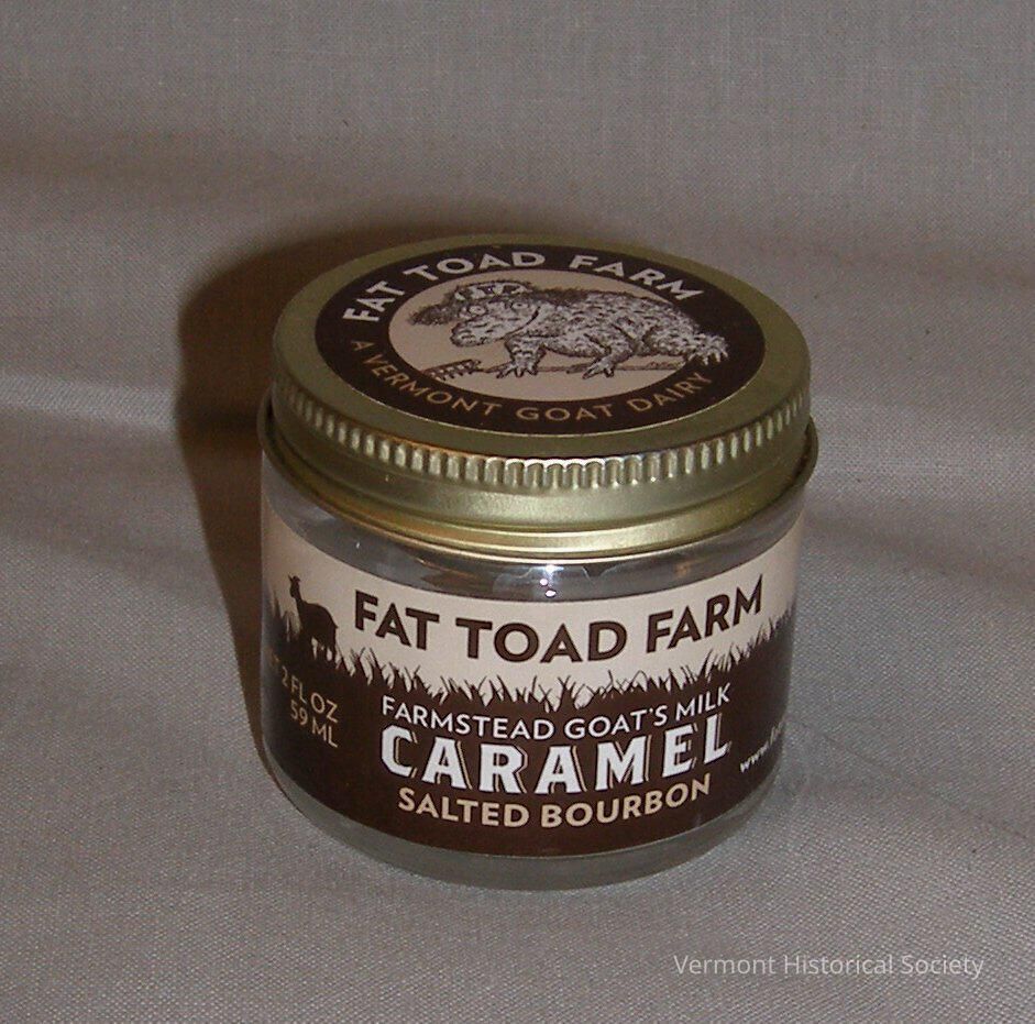 (a) Cap has a paper label with farm logo in center with brown border imprinted: "FAT TOAD FARM/ A VERMONT GOAT DAIRY"