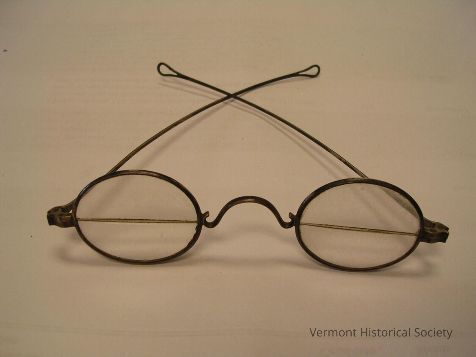 Metal framed eyeglasses with clear oval lenses. The lenses are split in half along the center with different strengths on the top and bottom.