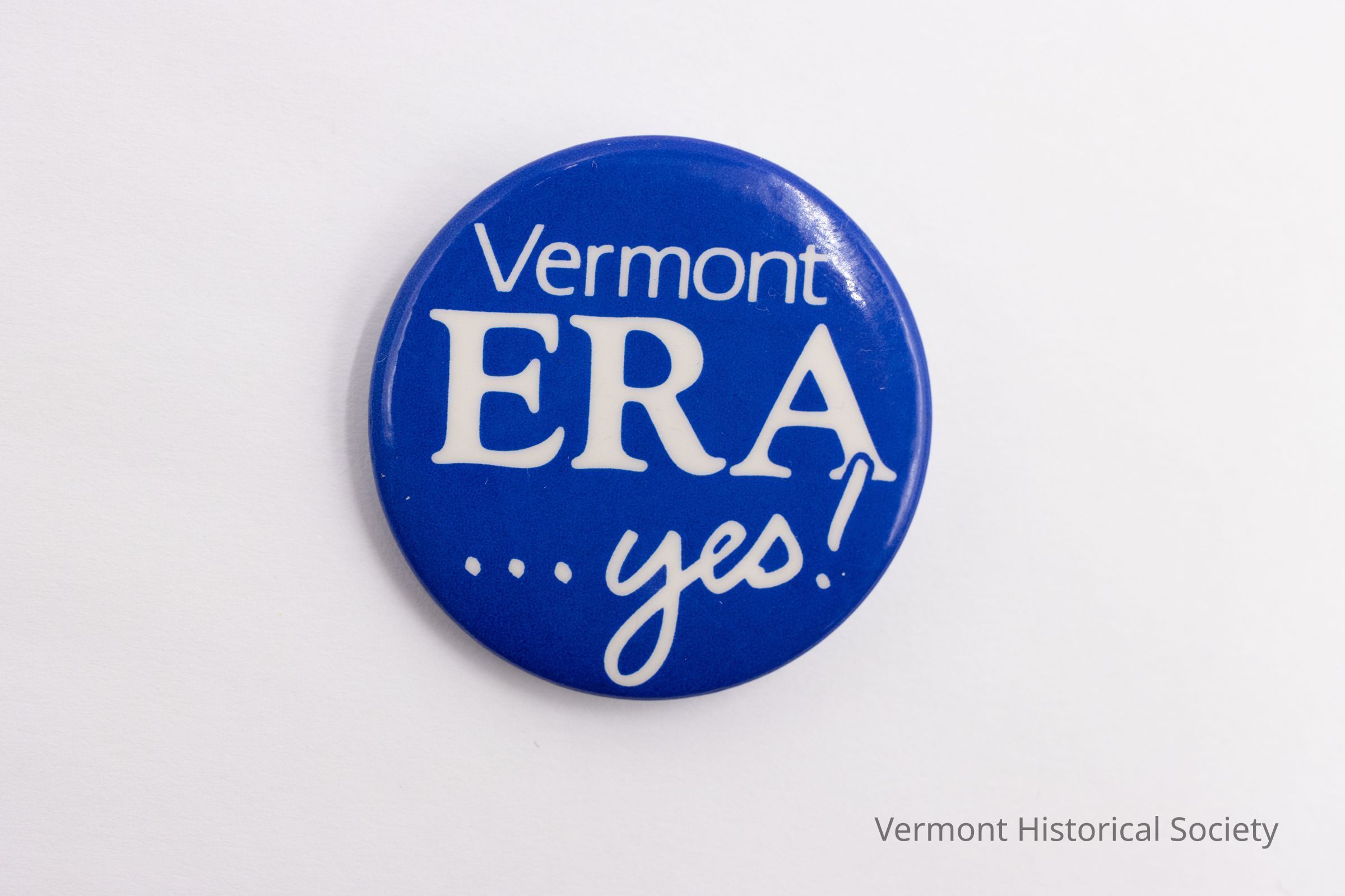 Round blue button with the white inscription, "VERMONT ERA . . . yes!"