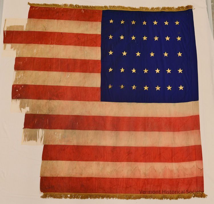 16th Vermont Infantry Regiment national flag with red and white stripes. Stars gold in color.