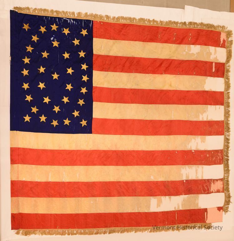 10th Vermont Infantry Regiment national flag, made of silk with gold painted stars.