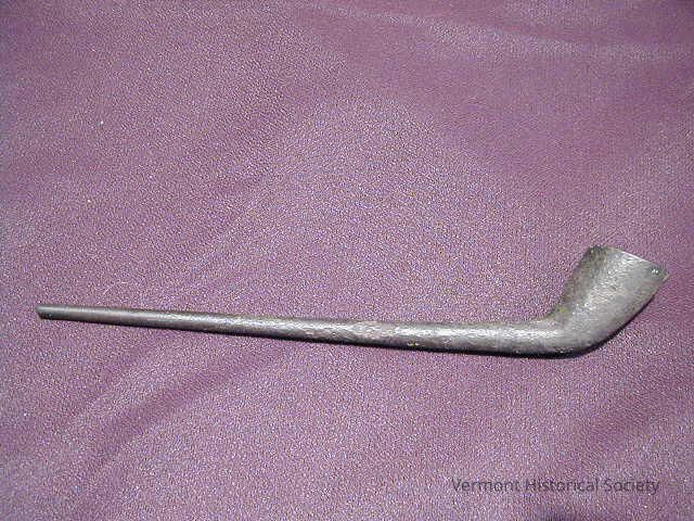 Iron smoking pipe. The pipe has a tapered bowl and long tapered stem.
