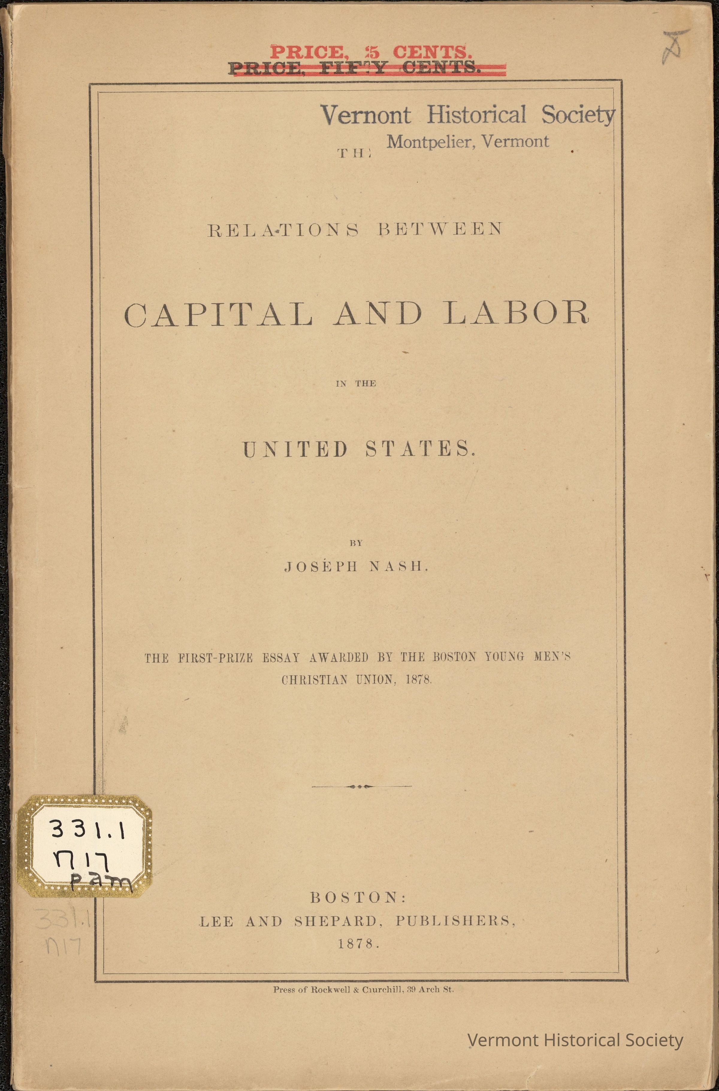 Pamphlet titled "Relation Between Capital and Labor in the United States" by Joseph Nash.