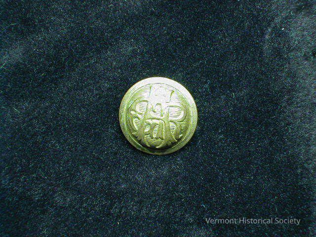 Brass post-backed button molded with the intertwined letters, "GAR".