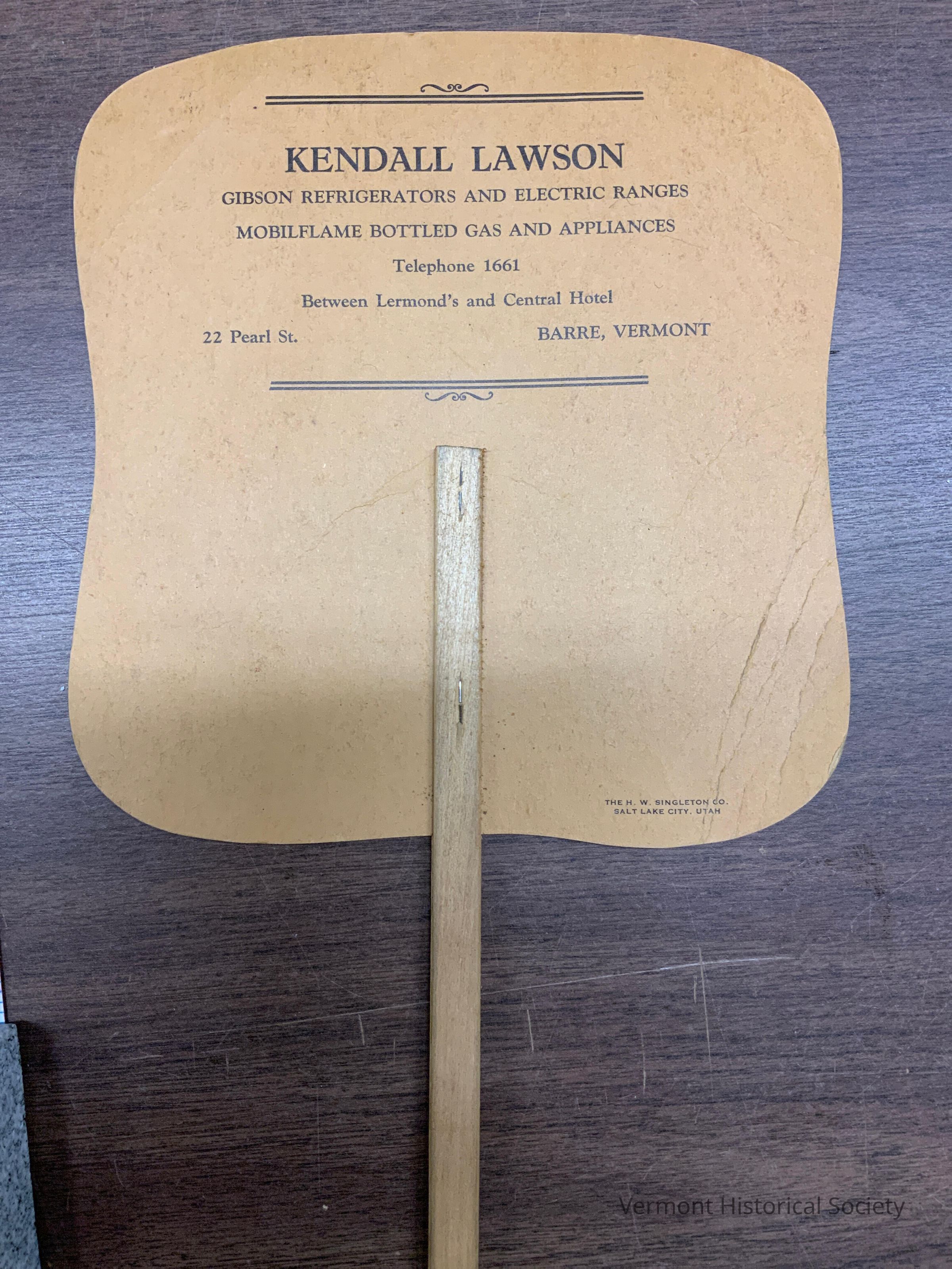 Given out as promotional advertisement by Kendall Lawson Furniture and Appliance Company in Barre, Vermont