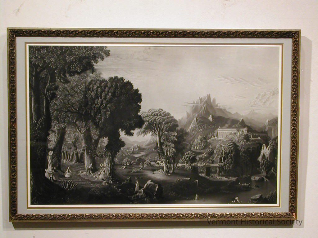 The charcoal drawing was copied from an engraved print of a painting by Thomas Cole. The charcoal was likely done by Charlotte Langworthy Burke of Middlebury, Vermont.Acquisition