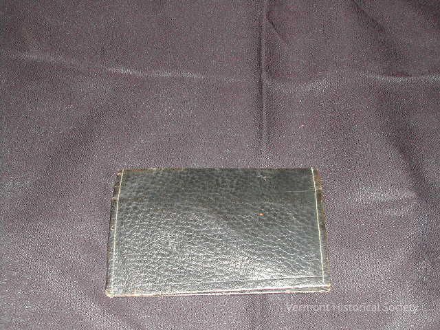 Black leather bi-fold wallet. The railway guide, "Baby Pathfinder," is contained inside.