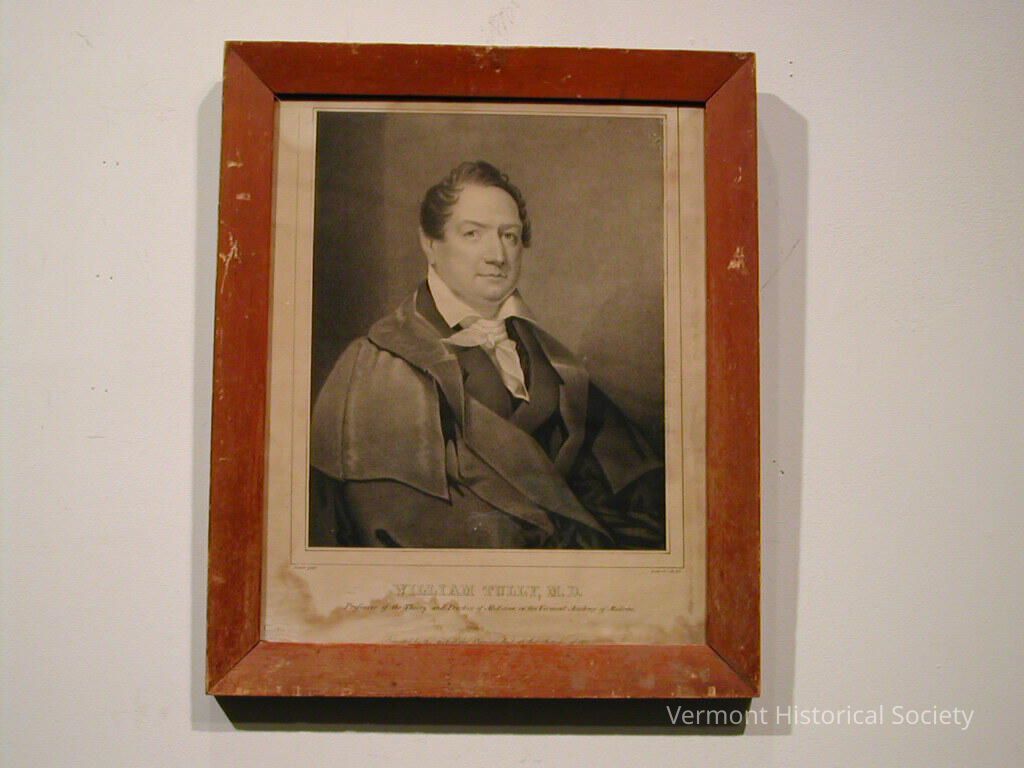 This print depicts a portrait of a middle-aged man who is shown from the waist up. He is sitting and wearing a black suit jacket with a large black cloak that has shoulder pieces. The man is facing towards the right and looking straight toward the viewer. He is also wearing a white collar and a white neck piece, which are visible in the portrait.