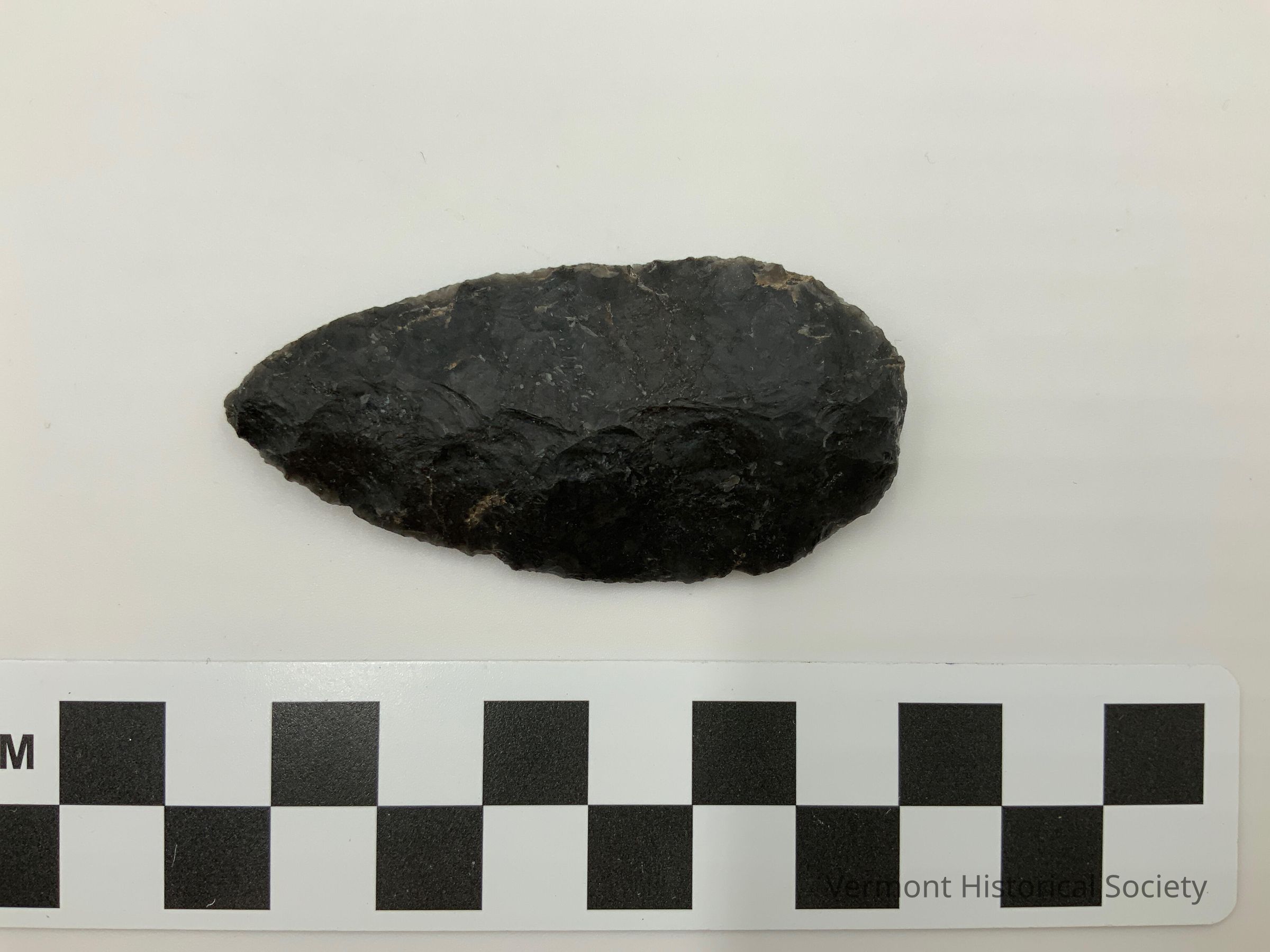 Oval-shaped chipped stone projectile point or perforator.