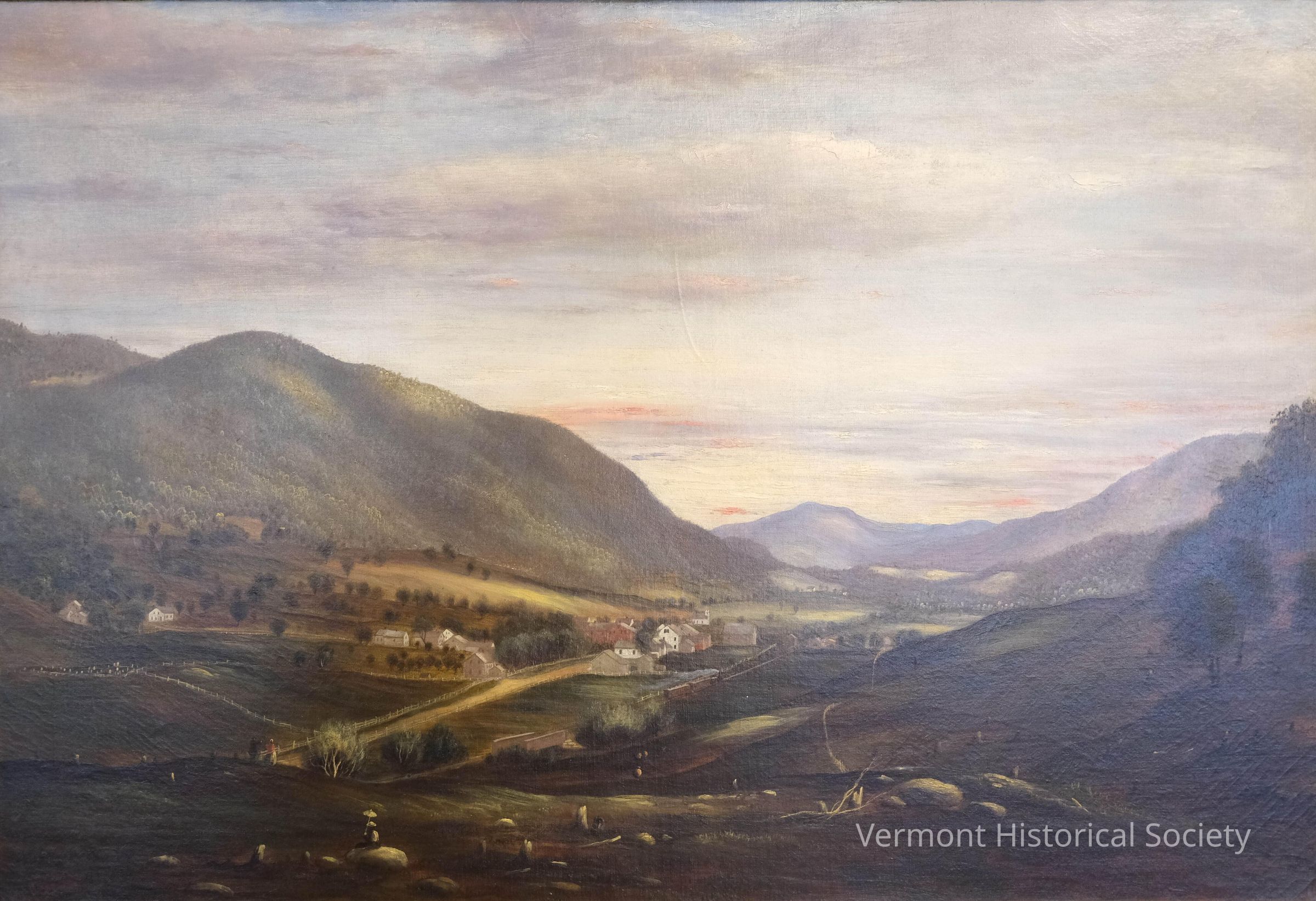 Landscape view of North Dorset, Vermont, in the style of the Hudson River School.