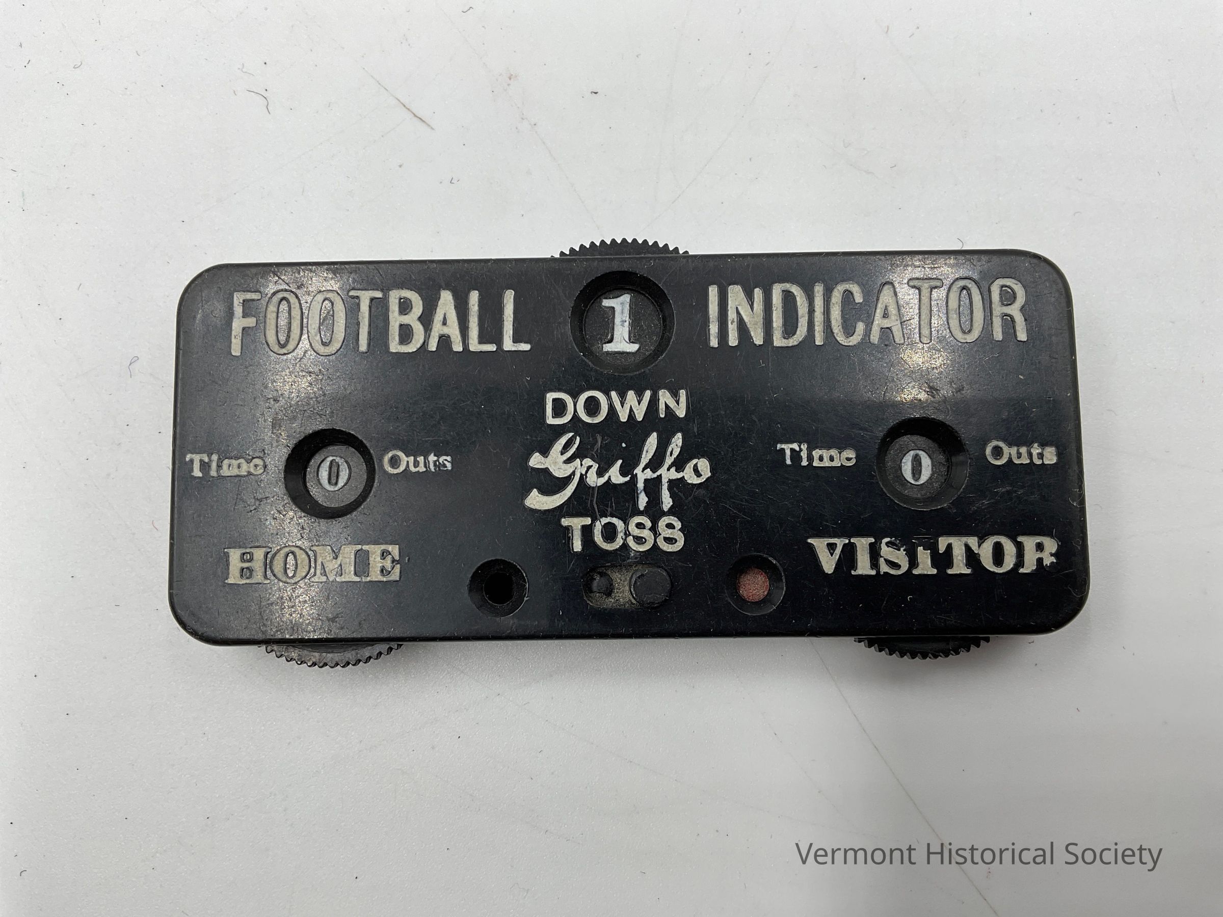 Lawrence K. Rossi (1918-2015) of Barre was a long-time football official in Vermont and New England. He wore and used this jacket, hat, whistle, coin for the toss and down clicker.Acquisition