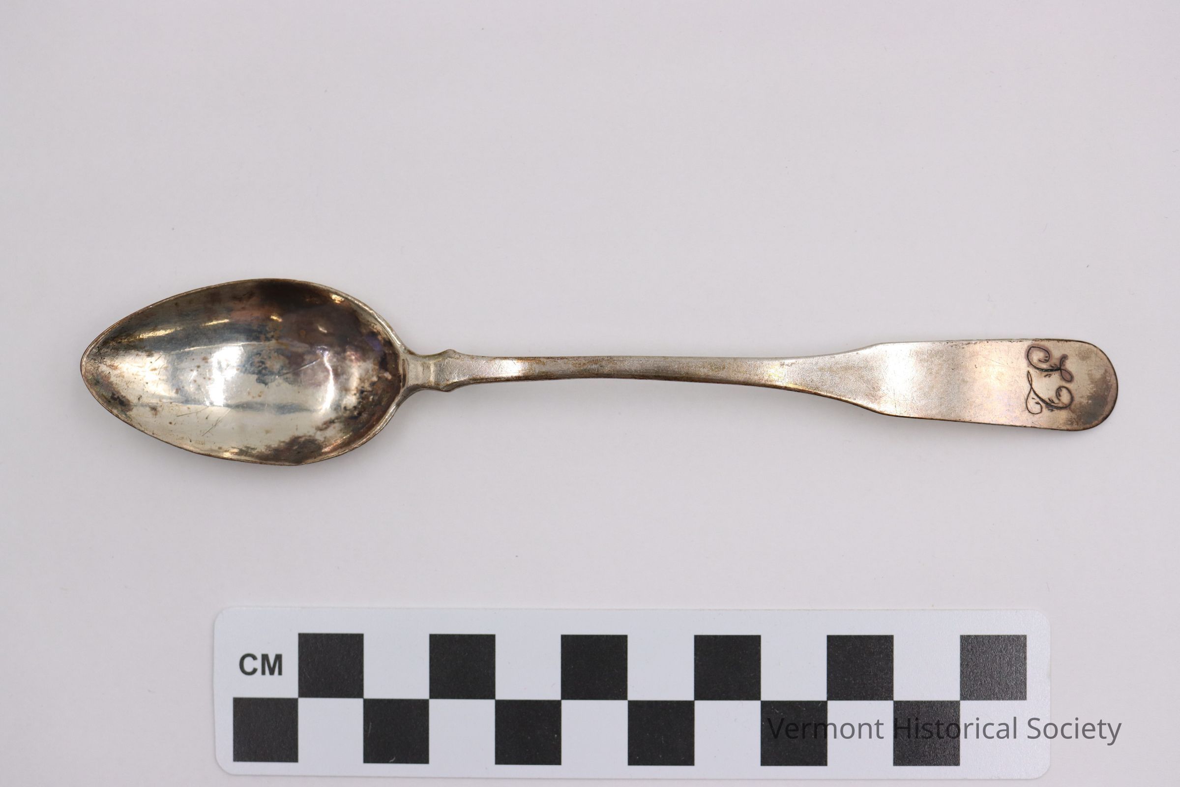 1 of 4 teaspoons, each engraved with the initials, "SQ".