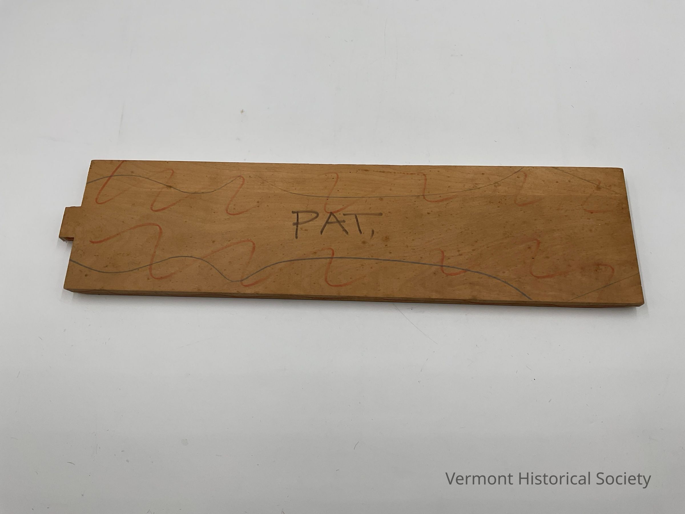 A board described as a back splat pattern. It has numbers written in marker on it.Context