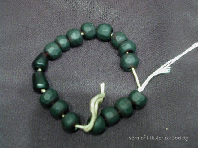17 black glass beads. They have been tied together on a white string.
