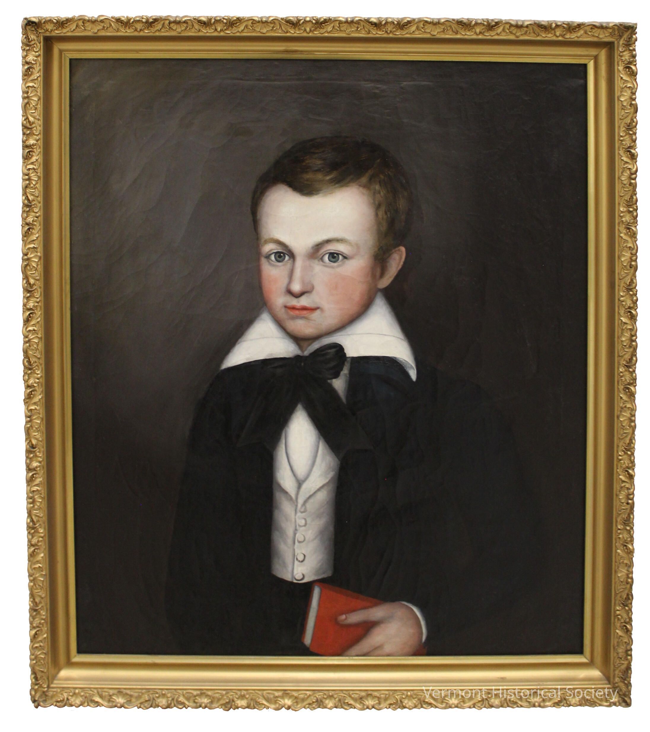 Newell Kinsman (1795-1858) moved to Barre as a young lawyer and quickly established the leading law firm in town. This remarkable family group illustrates the talent of itinerant portrait painters of the day. Included in the group are his wife Leonora Lamb Kinsman (1810-1856) and their three children, George (b. 1829), Edward (b. 1831), and Ellen (b. 1833).