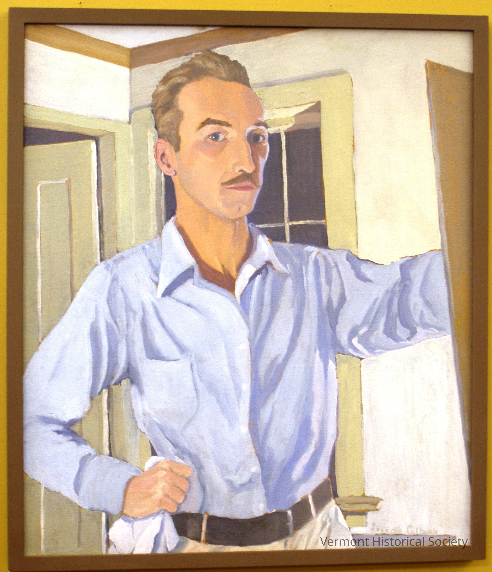 Based on style, materials, size, and age of sitters, it’s very probable that this self-portrait and the portrait of his wife Gladys (2024.24.1) were painted around the same time. Gladys and Francis, along with their son David had fully settled in Burlington by the 1940s and made that city their home and muse for the rest of their lives.