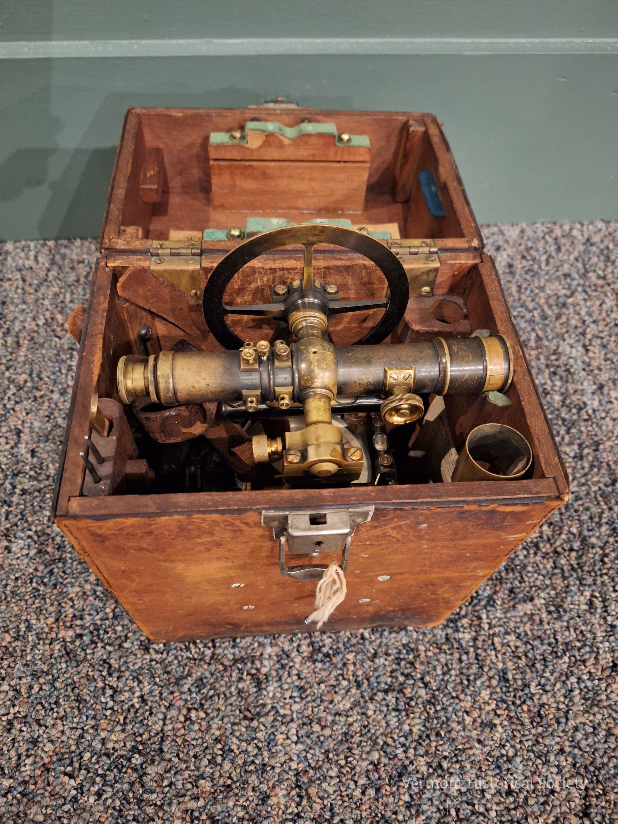 "Light Mountain" transit, carrying box and tripod manufactured in Troy, N.Y. in 1845
