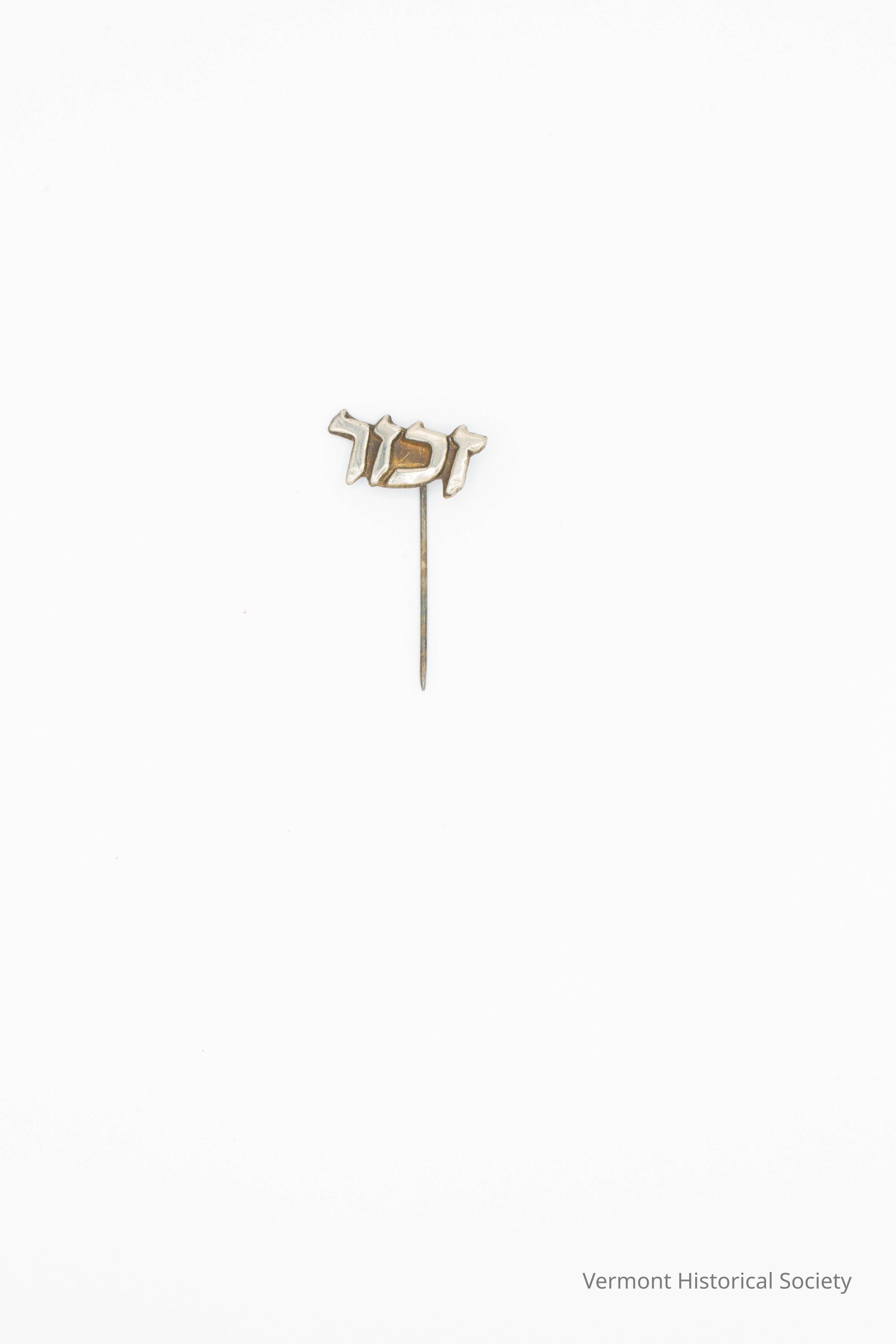Silver stick pin with Hebrew letters for the word, "remember." It would be written "zachor" and pronounced, "zahor."Context