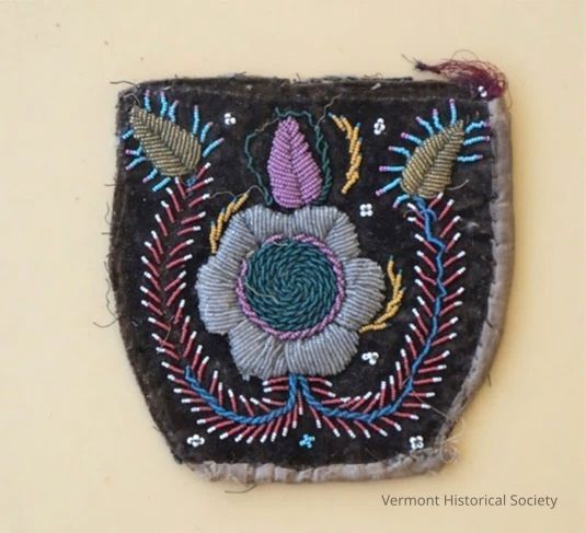 Beaded floral design on black fabric.